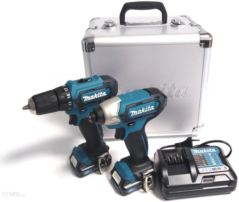 Wyposażenie standardowe:Wiertarko wkrętarka – DF333DZakrętarka udarowa – TD110DŁadowarka DC10WDAkumulatory 2 x BL1016 (1,5Ah)Walizka transportowa aluminiowa