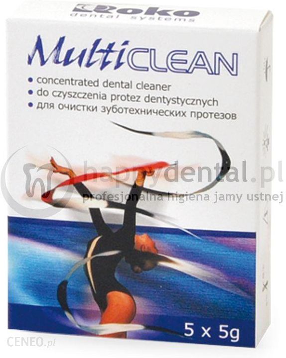 MULTICLEAN – proszek do czyszczenia protez wykonanych z tworzyw termoplastycznych oraz akrylu. Skutecznie czyści protezy, szyny, aparaty ortodontyczne z nalotów, osadów i przebarwień. Neutralizuje nieprzyjemne zapachy.